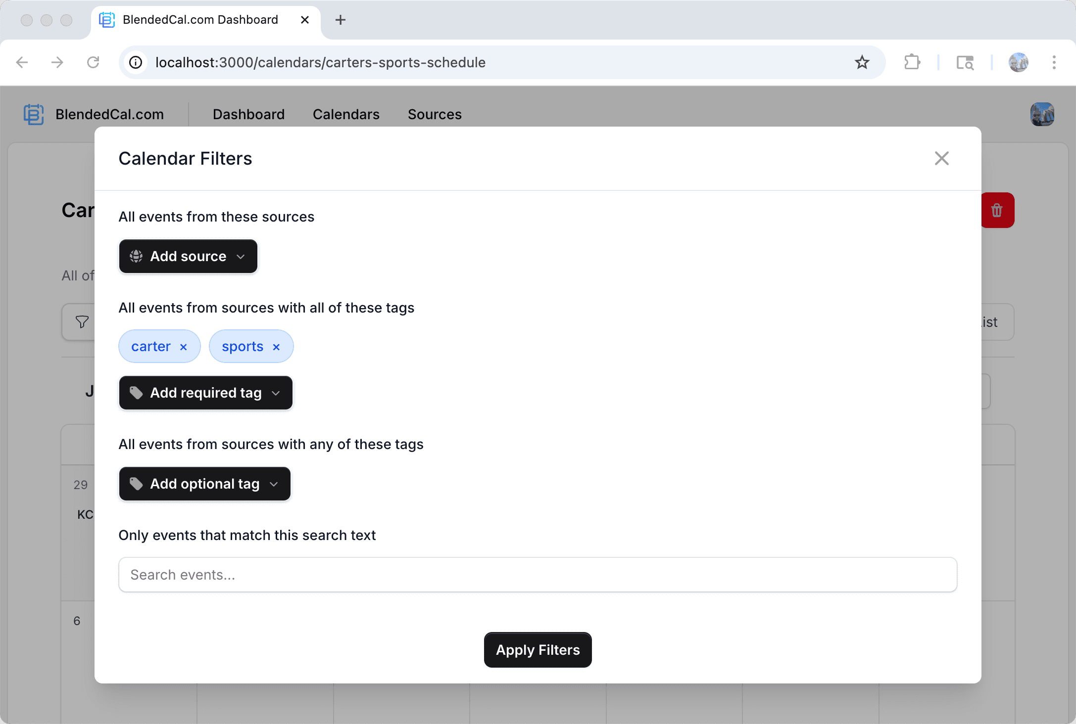 Hide practices and only show games. Filter out events from sources you don't control. Use tags to organize events across multiple sports, schools, or activities โ your calendar, your rules.