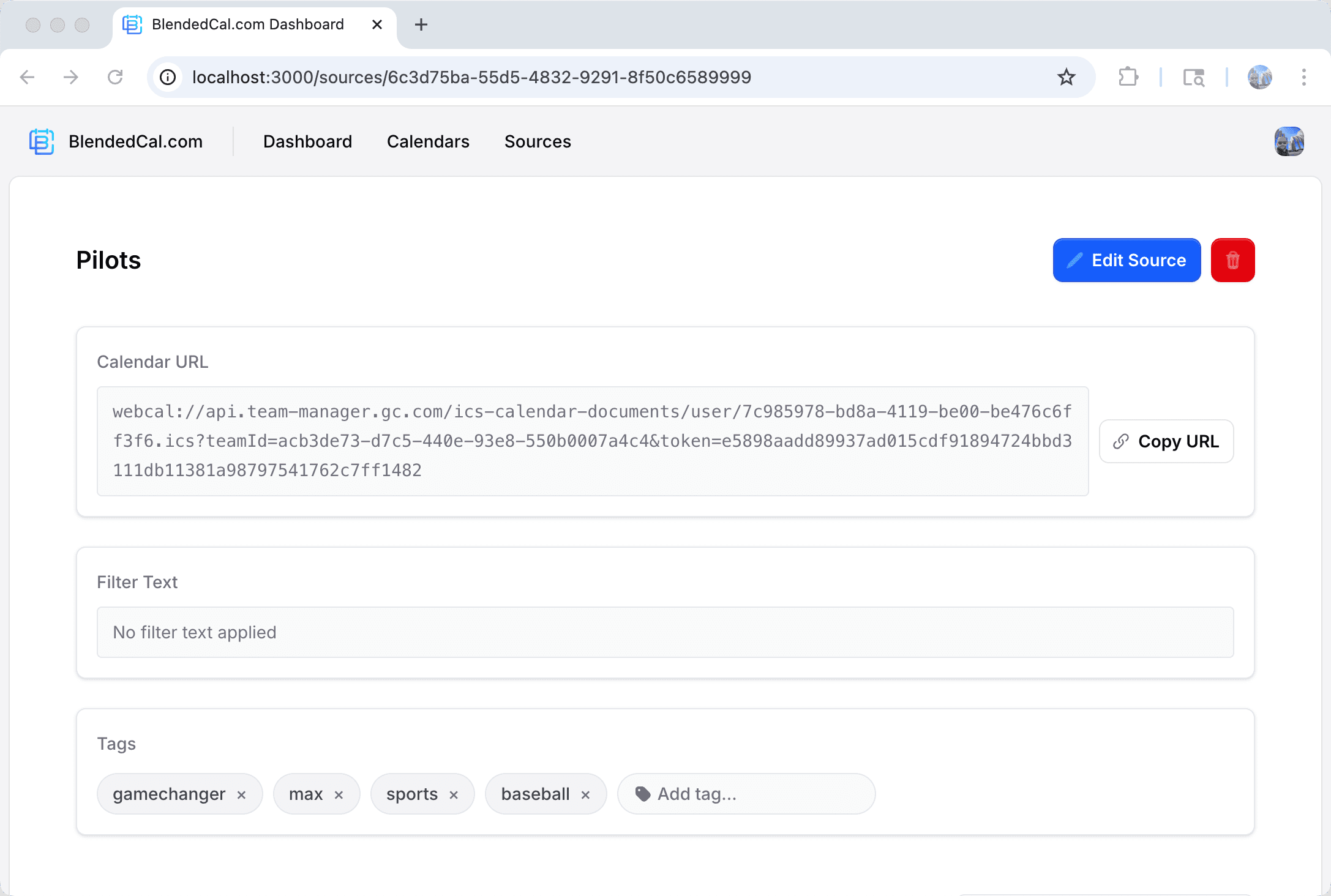 Paste in ICS URLs from TeamSnap, GameChanger, Google Calendar, school portals โ anything that publishes a calendar feed.